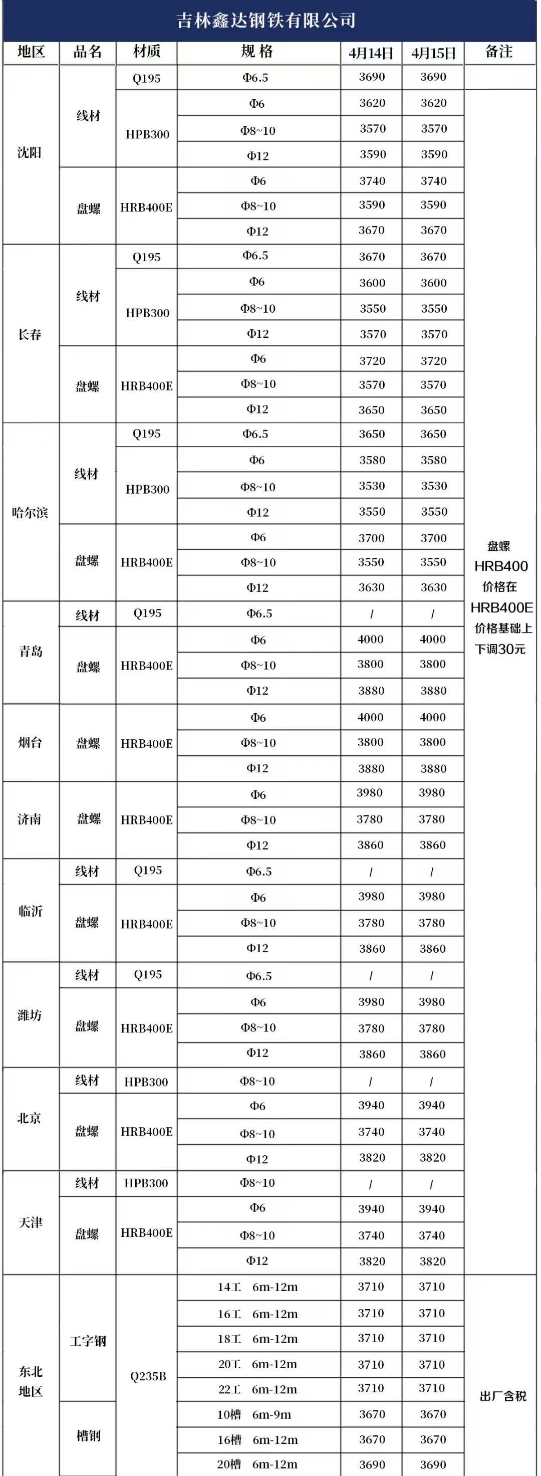 4月15日产品报价