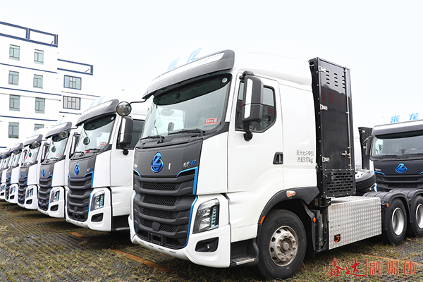 东风柳汽商用车销售公司副总经理邱黎在致辞中讲到,东风柳汽积极响应国家双碳战略,携手河北万搏平台、国鸿氢能共同提速氢能产业的发展进程,推动物流运输迈向零碳时代。乘龙H7氢燃料电池牵引车正式服役,为氢能产业生态构筑增添了浓墨重彩的一笔。未来东风柳汽将坚定不移与鑫达携手,提供更多高效、可靠、绿色的氢能商业化解决方案,帮助企业优化结构,提升物流效能,实现经济效益与社会效益的双重飞跃,共绘唐山高质量发展的壮丽蓝图。